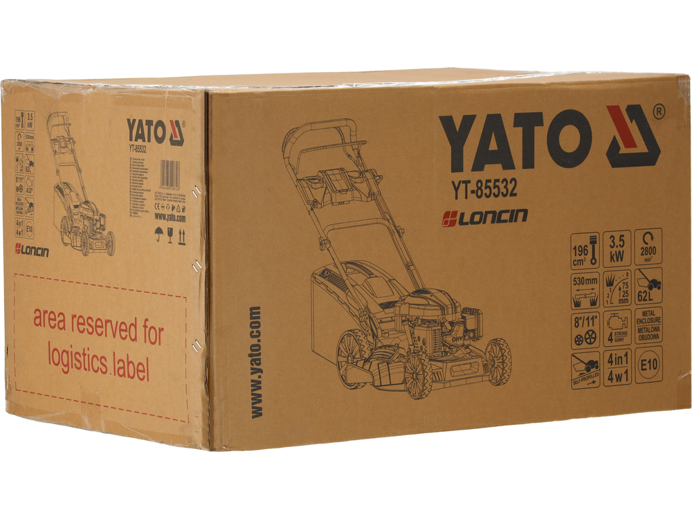 O mașină de tuns gazon pe benzină echipată cu un motor LONCIN de 196 cm3, care asigură putere și eficiență ridicate. Lățimea de lucru de 53 cm permite o cosire rapidă și eficientă, iar datorită reglajului central de tăiere în 8 trepte, înălțimea de tăiere în intervalul 25-75 mm, puteți ajusta cositul la nevoile și condițiile gazonului.