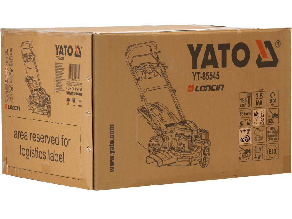 O mașină de tuns gazon pe benzină echipată cu un motor LONCIN de 196 cm3, care asigură putere și eficiență ridicate. Roata din față pivotantă asigură o manevrabilitate excelentă, făcând cositoarea o alegere bună pentru parcelele cu multe plantații. Lățimea de lucru de 53 cm permite o cosire foarte rapidă, iar reglarea centrală a înălțimii de tăiere în 8 trepte vă permite să reglați fără probleme nivelul cuțitelor la starea gazonului.