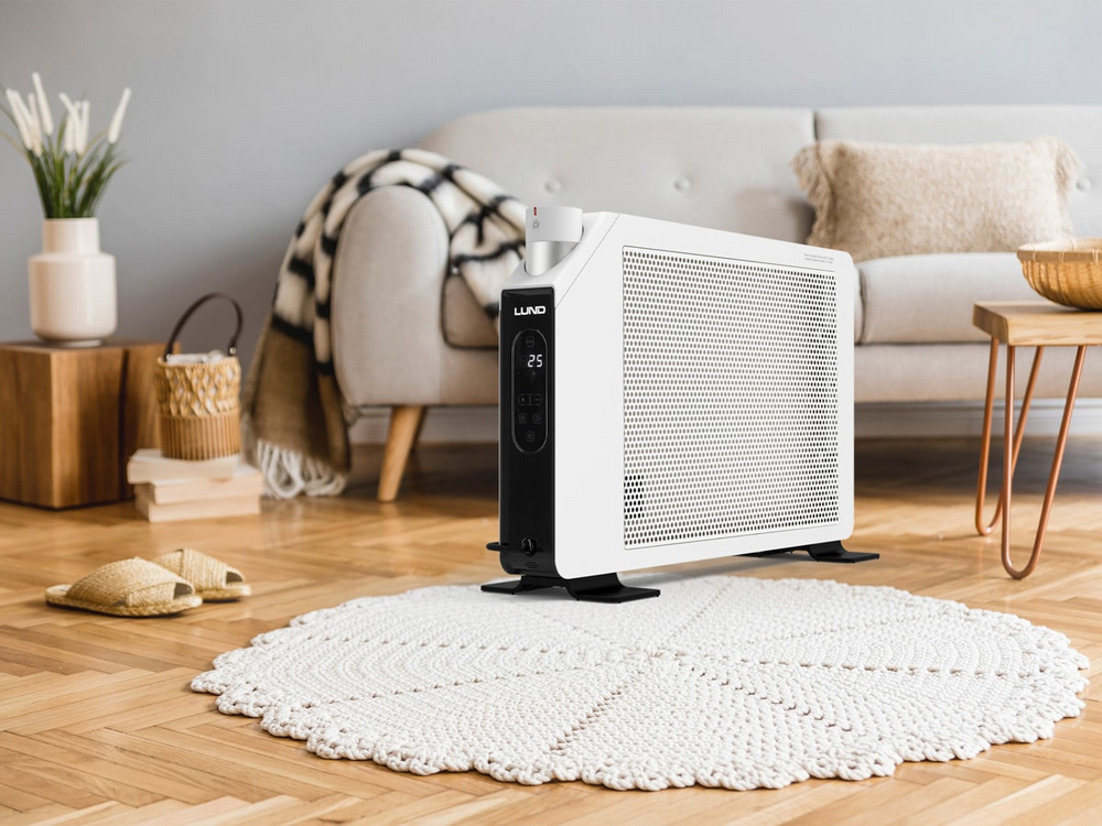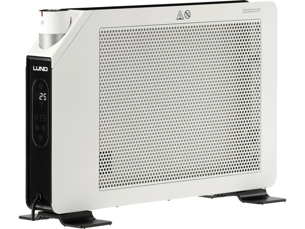 Încălzitor portabil de tip convector-radiator cu reglare a puterii și a temperaturii de încălzire, umidificator unic și termostat de protecție împotriva supraîncălzirii. Dispune de un timer care permite setarea timpului de funcționare până la 12 ore, precum și de un panou de control digital.