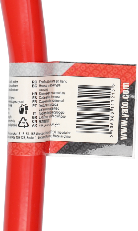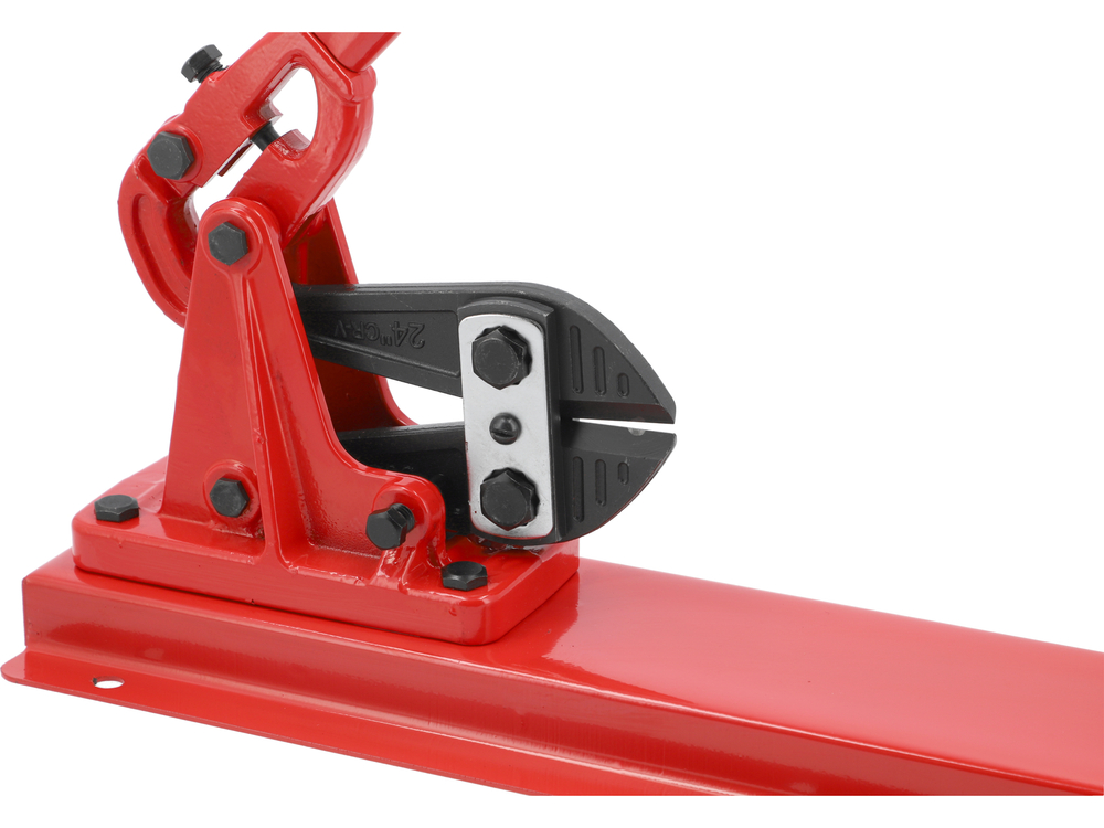 Foarfeca de 600 mm pentru taierea barelor de otel. Baza fixata asigura stabilitatea in timpul taieturilor efectuate.