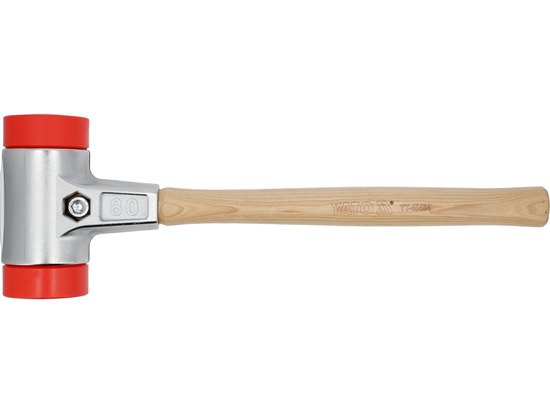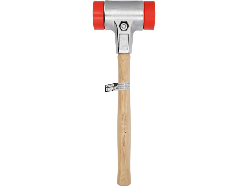 Ciocan de pavele cu mâner din hickory și cap de lovire fixat cu două protecții metalice. Utilizarea materialului UPE asigură o rezistență foarte mare și rezistență la uzură, precum și la multe substanțe chimice.