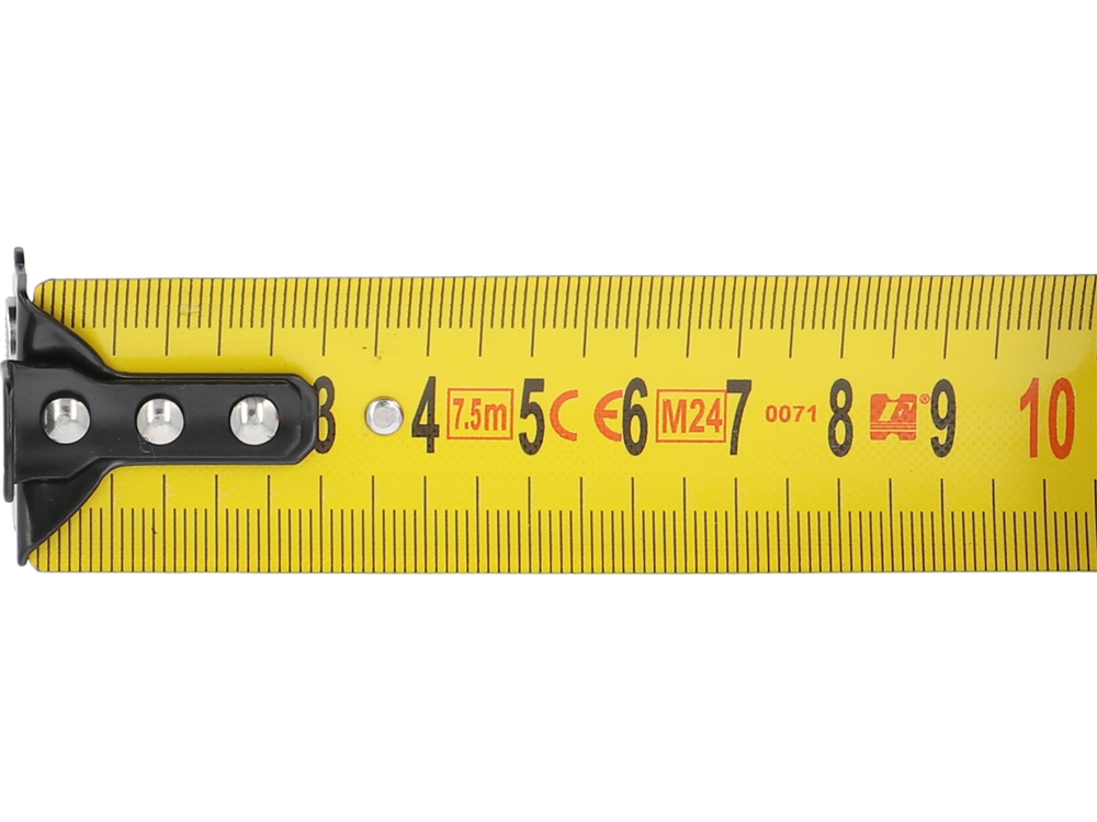 Măsurătoare cu o bandă de oțel extrem de largă de 32 de milimetri, realizată în clasa a II-a de precizie de măsurare. Echipată cu o curea scurtă, care poate fi comod trecută în jurul încheieturii sau pe care se poate atârna măsura.