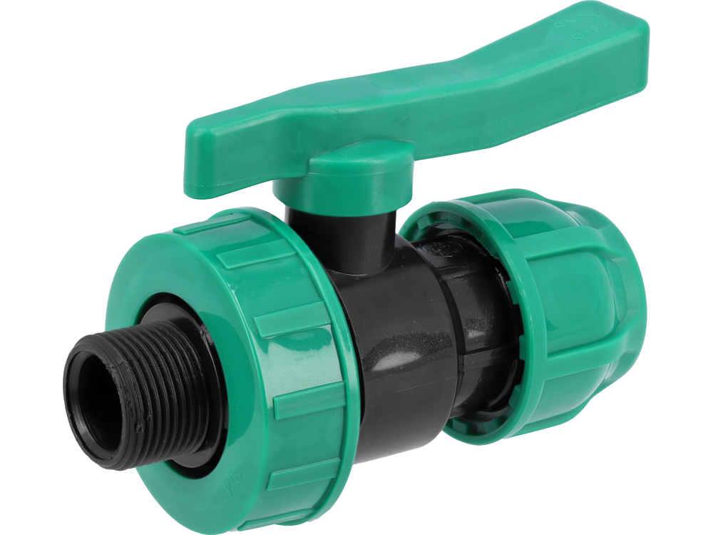 Supapă cu sferă bărbătească de 25 mm x 3/4" destinată pentru conectarea conductelor PE, PP în instalațiile de apă.