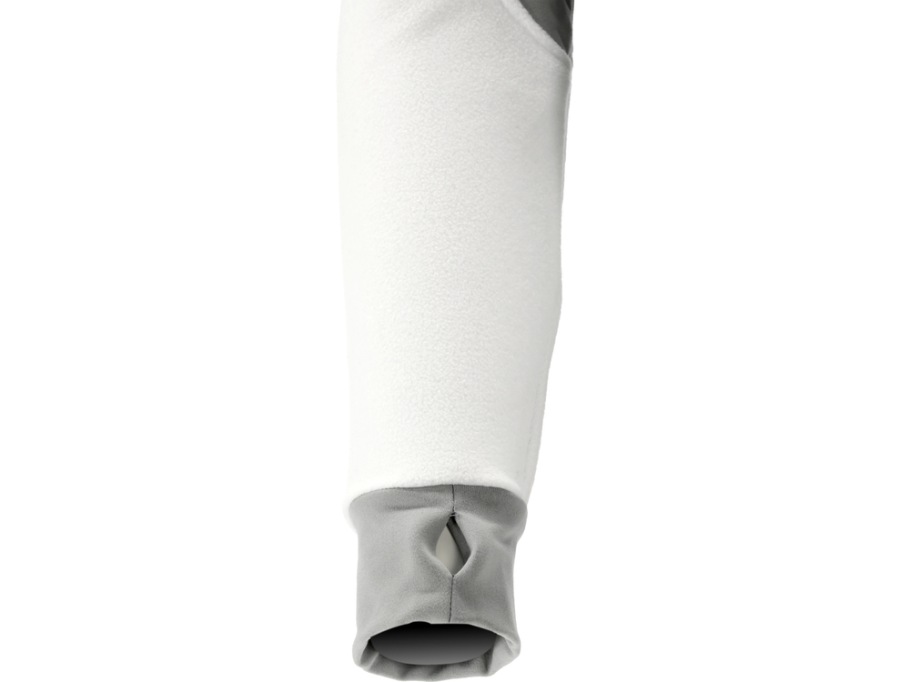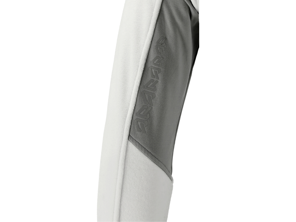 - Țesătura elastică stretch 2-way pe laterale, sub brațe și parțial pe partea inferioară a mânecilor reduce aproape complet disconfortul asociat cu munca în polar tradițional, de exemplu în timpul efectuării de rotații ale trunchiului sau în timpul lucrului cu mâinile deasupra capului. Asigură, de asemenea, o mai bună circulație a aerului, reducând transpirația, în special sub braț.