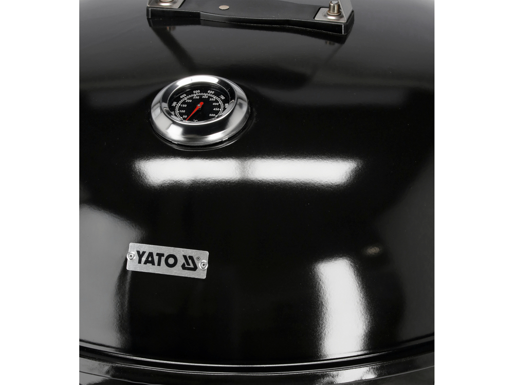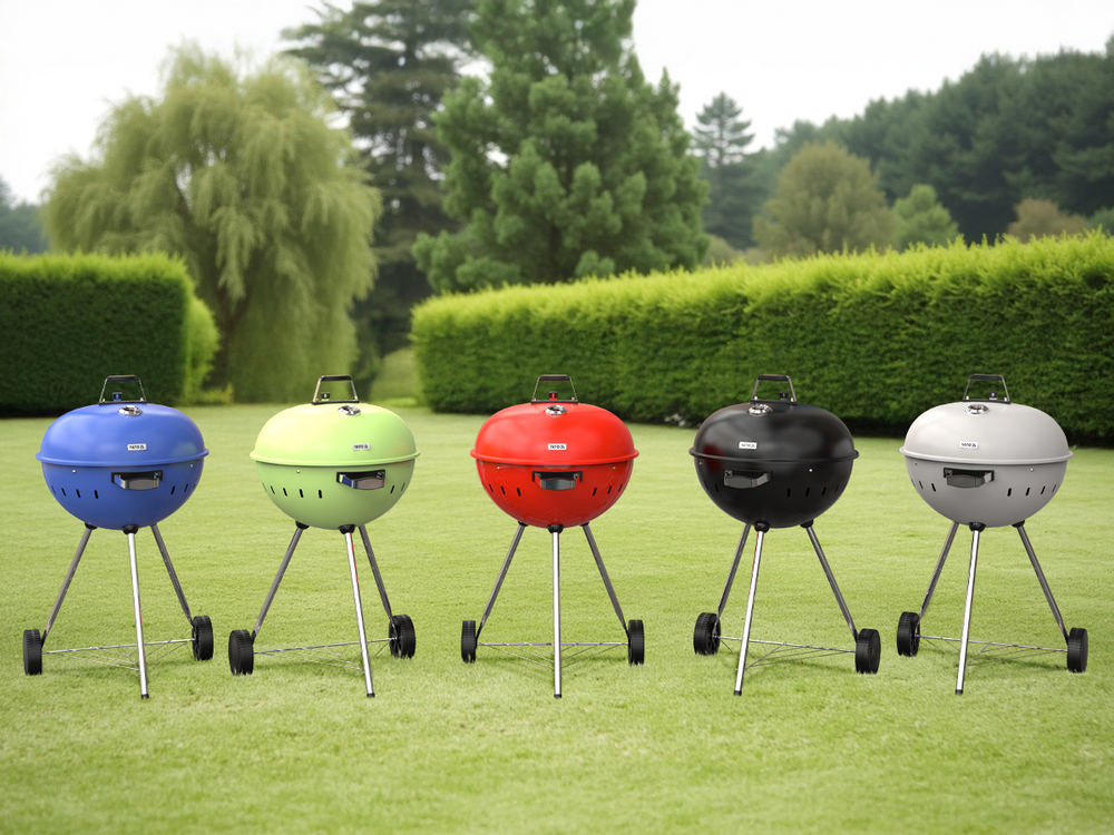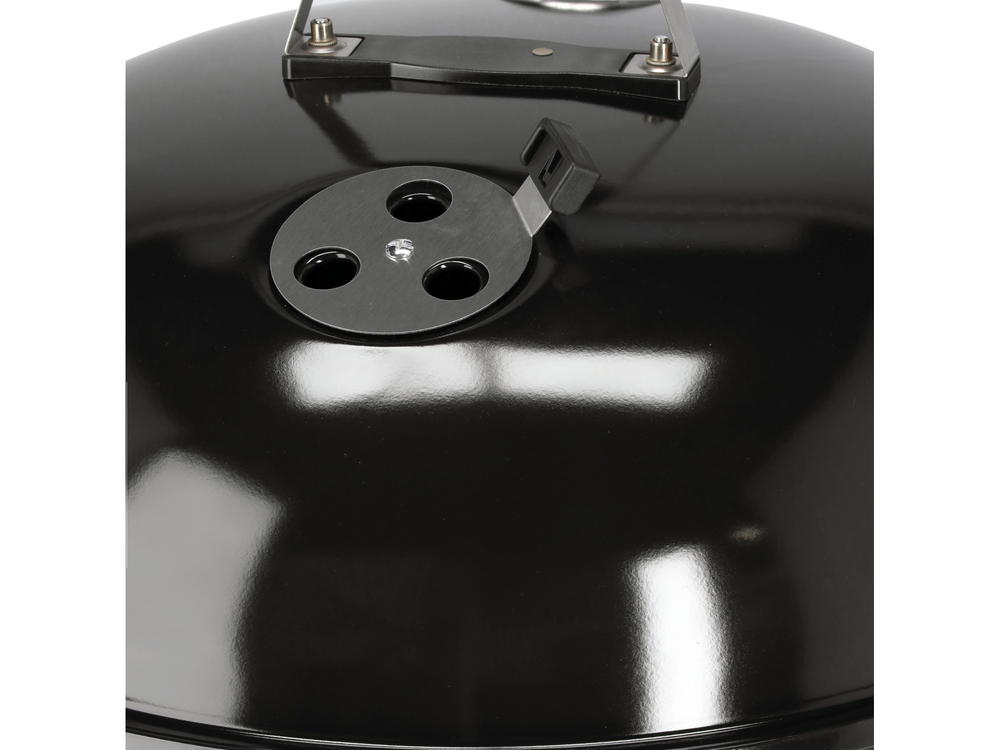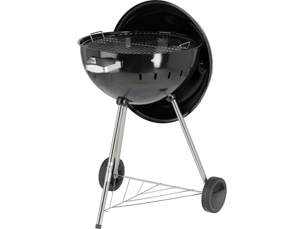 Grătar de cărbune din oțel cu grătar cromat și cu o cameră de ardere închisă cu capac. Dotat cu o clapetă pentru reglarea circulației aerului, care permite controlul constant al nivelului de incandescentă și temperaturii. Construcția ușoară și roțile asigură mobilitatea grătarului în orice loc de pe terasă sau în grădină.