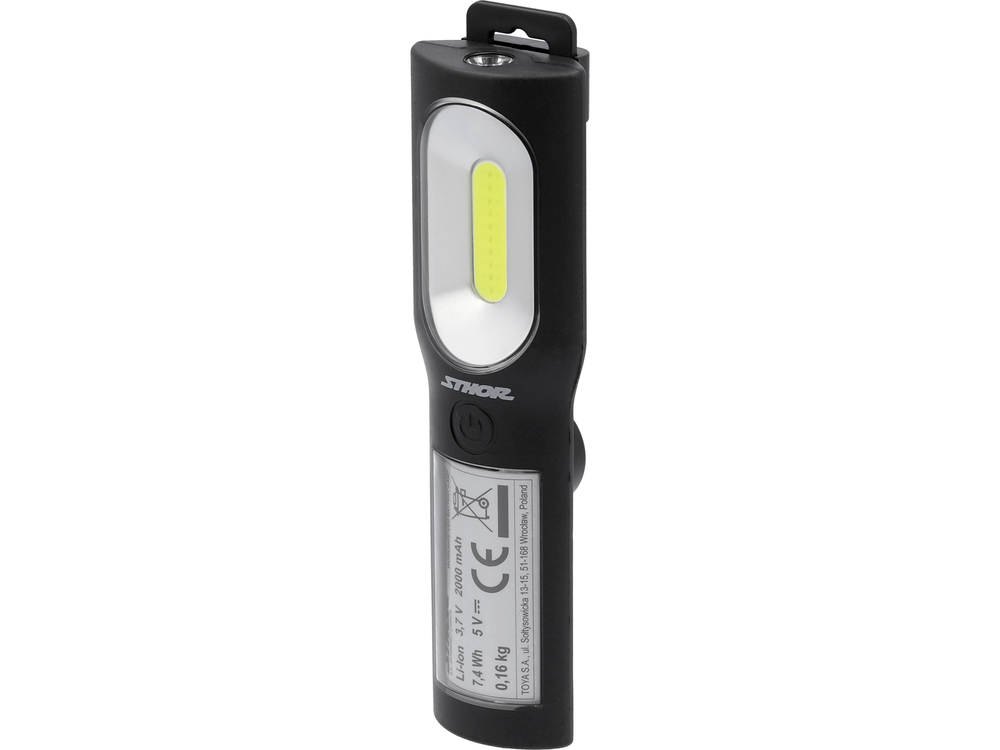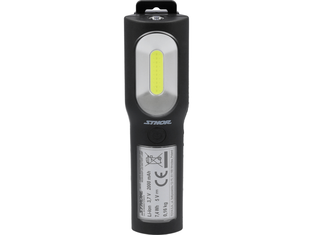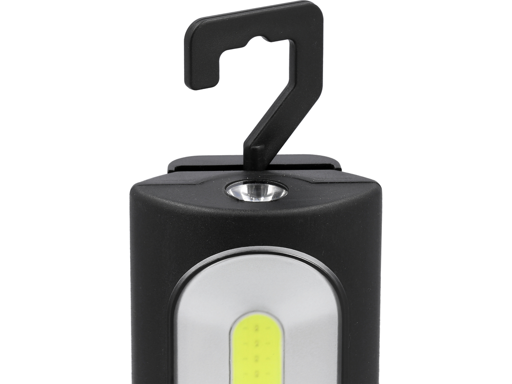 Lampă de lucru portabilă ușoară cu patru moduri de funcționare, care permit ajustarea iluminării în funcție de activitățile desfășurate și nivelul de încărcare a bateriei. Un alt avantaj este clipsul, magneții și cârligul care permit suspendarea lămpii.