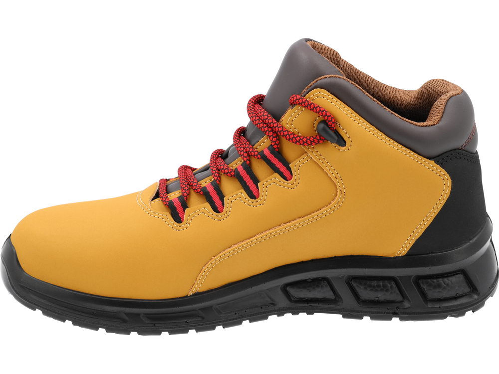 Partea superioară din piele naturală de înaltă calitate și inserturile speciale la limbă limitează în mod semnificativ pătrunderea și absorbția apei. Vârful certificat și insertul antipersforant din material plastic sunt mai ușoare decât echivalentele lor din oțel. Insertul este elastic și nu restricționează flexibilitatea arcadelor plantare.