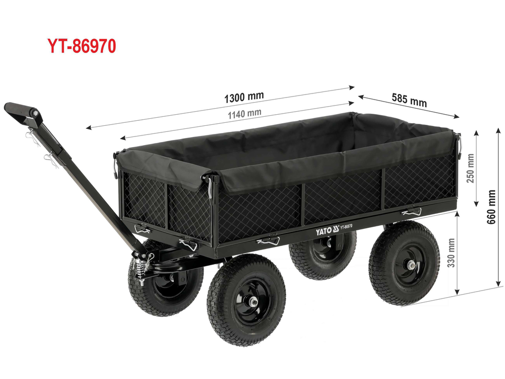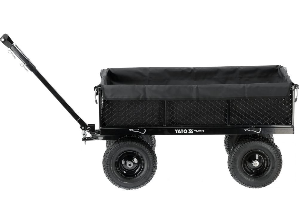 • construcție specială a tirului permite cuplarea căruciorului la utilaje de grădină, cum ar fi tractoarele, funcționând ca o remorcă