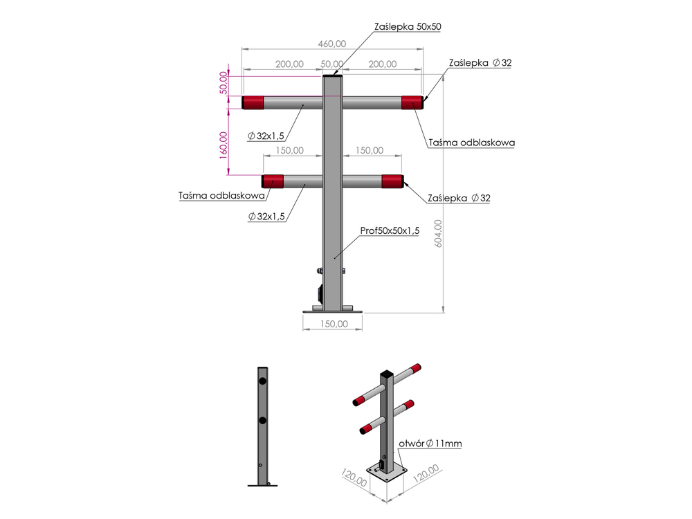 - lățimea și adâncimea stâlpului: 50 x 50 mm