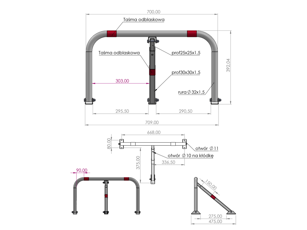 Barieră de parcare pliabilă "barieră" închisă cu lacăt, pentru protejarea eficientă a locurilor împotriva accesului neautorizat sau parcării vehiculelor. Asigură confort și siguranță în gestionarea accesului în zonele desemnate. Permite blocarea temporară a locurilor de parcare sau a accesului, de exemplu, către o proprietate privată, căi pietonale, zone verzi, diguri împotriva inundațiilor, promenade.
