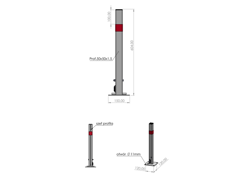 - lățimea și adâncimea stâlpului: 50 x 50 mm