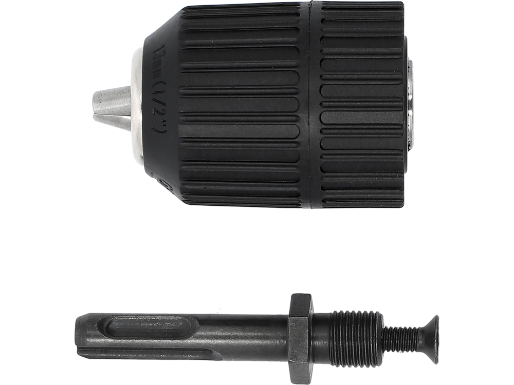 Maner de găurit autostrângător cu adaptor SDS-Plus cu cheie asigură o centricitate ideală în timpul găuririi și transferul optim al forței în timpul lucrului cu un burghiu sau un ciocan rotopercutor. Garantează o prindere sigură și stabilă a burghielor, chiar și în cazul unor încărcături mari. Utilizarea cheii crește forța de fixare, reducând riscul de alunecare a instrumentului în timpul lucrului.