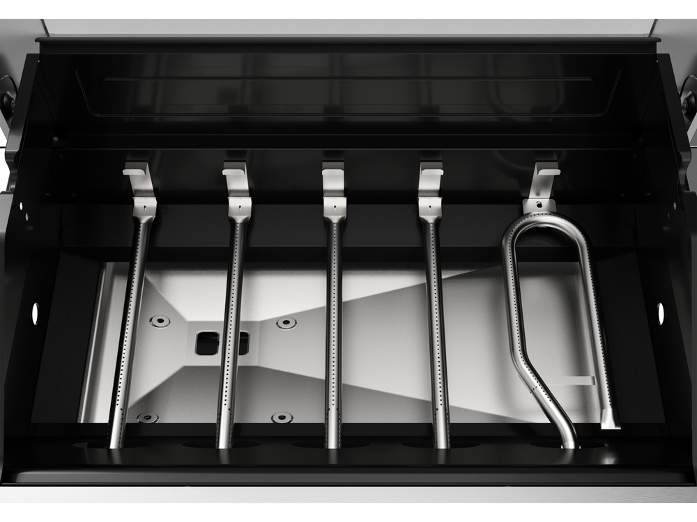 - arzător lateral cu infraroșu de 3,5 kW care atinge o temperatură extrem de înaltă de 800 de grade, permițând prăjirea rapidă (sear) și prepararea steak-urilor (nu se recomandă utilizarea ca arzător pentru încălzirea oalelor, tigăilor etc.)