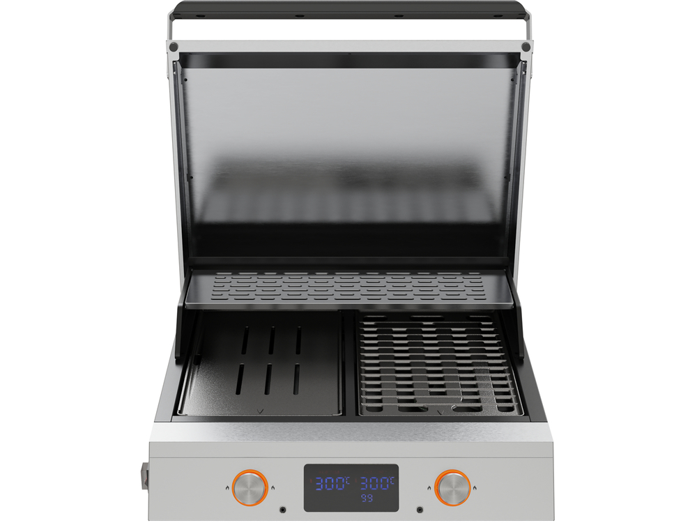 2 zone de gătit controlate separat asigură independența procesului de preparare. Posibilitatea de a selecta o temperatură și un timp de gătire diferite, precum și de a verifica temperatura ingredientelor cu ajutorul sondei incluse, permit pregătirea produselor perfect prăjite, păstrându-le suculența și gustul natural.