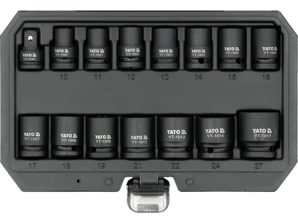 - include 14 chei tubulare hexagonale în dimensiunile: 10, 11, 12, 13, 14, 15, 16, 17, 18, 19, 21, 22, 24, 27 mm și reducerea 3/8" (F) x 1/2" (M)