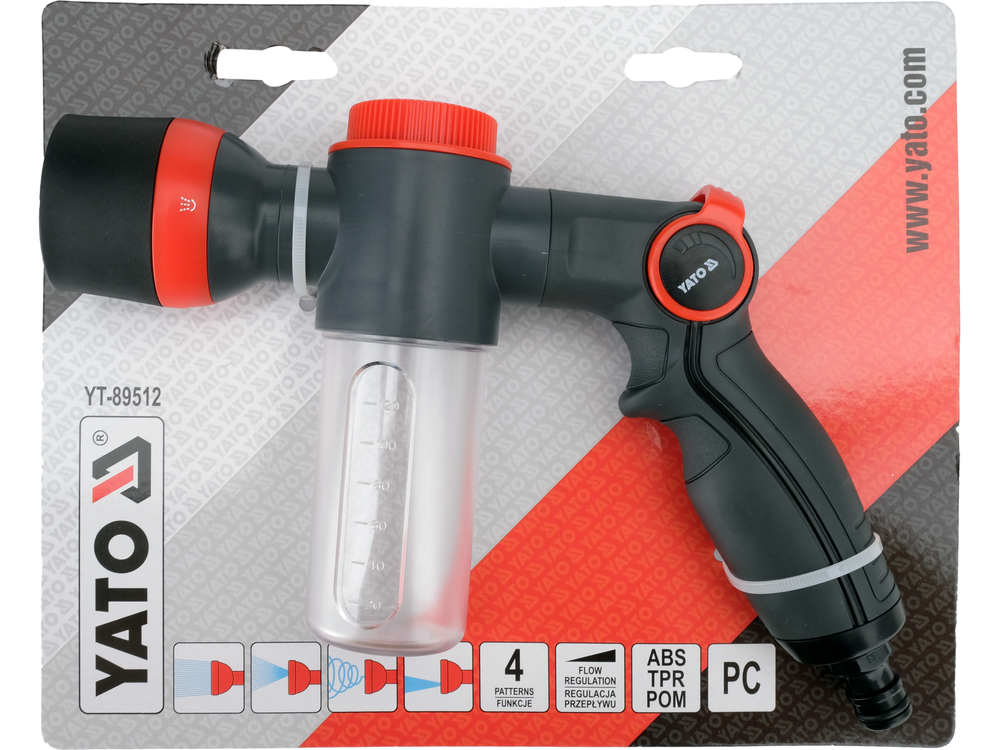 Pistol de pulverizare solid și funcțional, destinat pentru udarea plantelor și curățarea diferitelor suprafețe. Echipat cu 4 tipuri de jeturi de apă și un dispenser încorporat pentru agenți de curățare sau îngrășăminte lichide, asigură versatilitate și confort în utilizare.