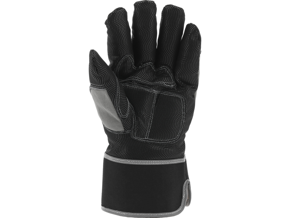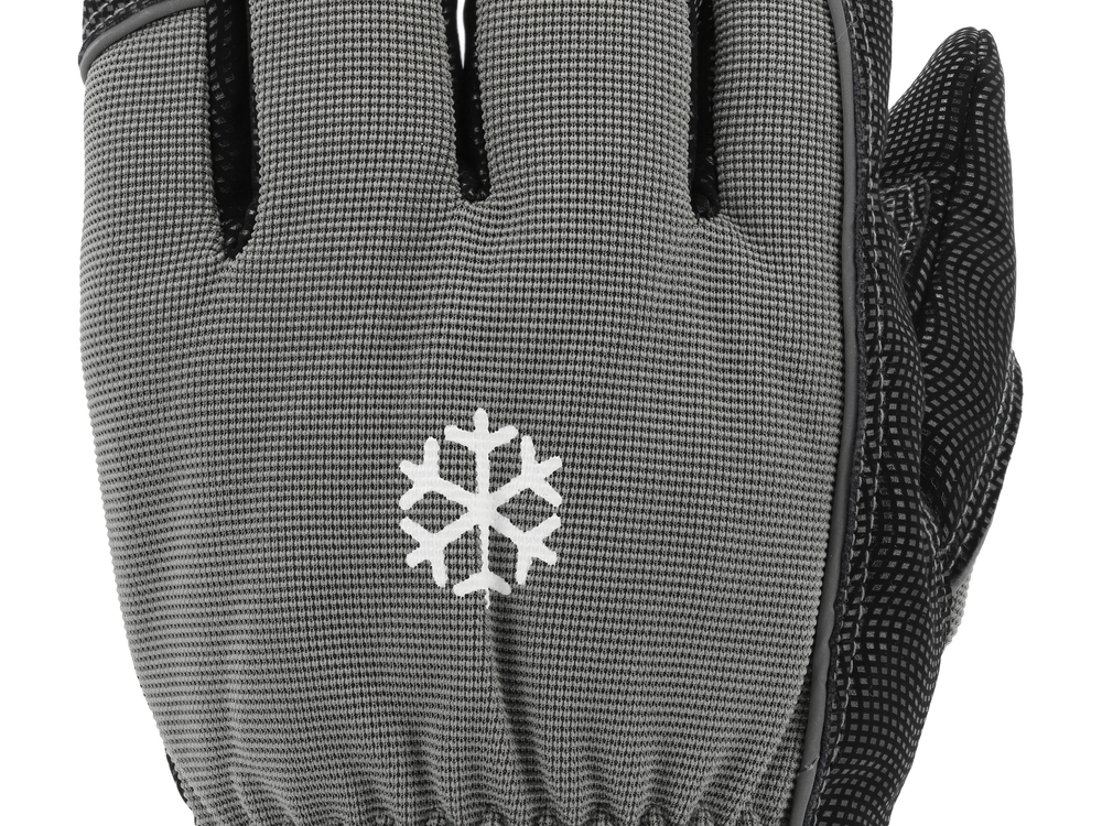 Mănuși de lucru întărite, căptușite. Partea de prindere este fabricată din piele sintetică de ultimă generație, care amintește de nubuc, cu un model ondulat care îmbunătățește aderența. Adăugarea de elastan conferă materialului elasticitate, ceea ce îmbunătățește semnificativ confortul în timpul muncii. Acestea sunt potrivite pentru lucrările de construcții, de curățenie, pentru transportul elementelor murdare și pentru activități în care precizia prinderii nu este necesară.