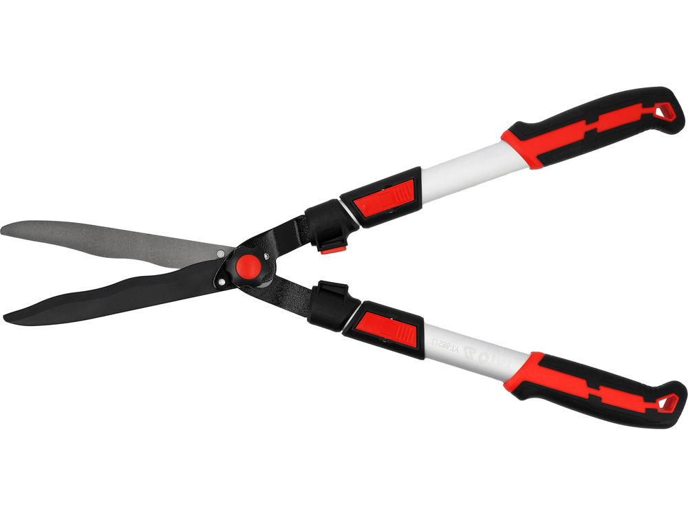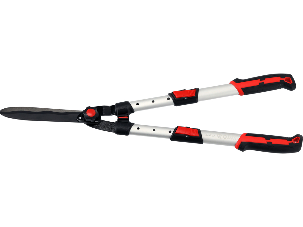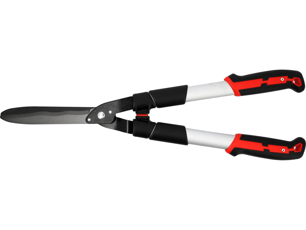 Foarfeca telescopică pentru gard viu cu reglare de lungime de la 660 la 825 mm permite tăierea confortabilă a gardurilor vii la diferite înălțimi. Lamele ondulate de 220 mm sunt realizate din oțel carbon 65 Mn rezistent, acoperite cu PTFE în partea superioară, asigurând o tăiere precisă și curată a ramurilor până la un diametru de 6 mm, facilitând îngrijirea zilnică a arbuștilor și modelarea gardului viu.