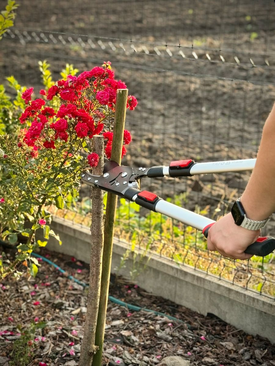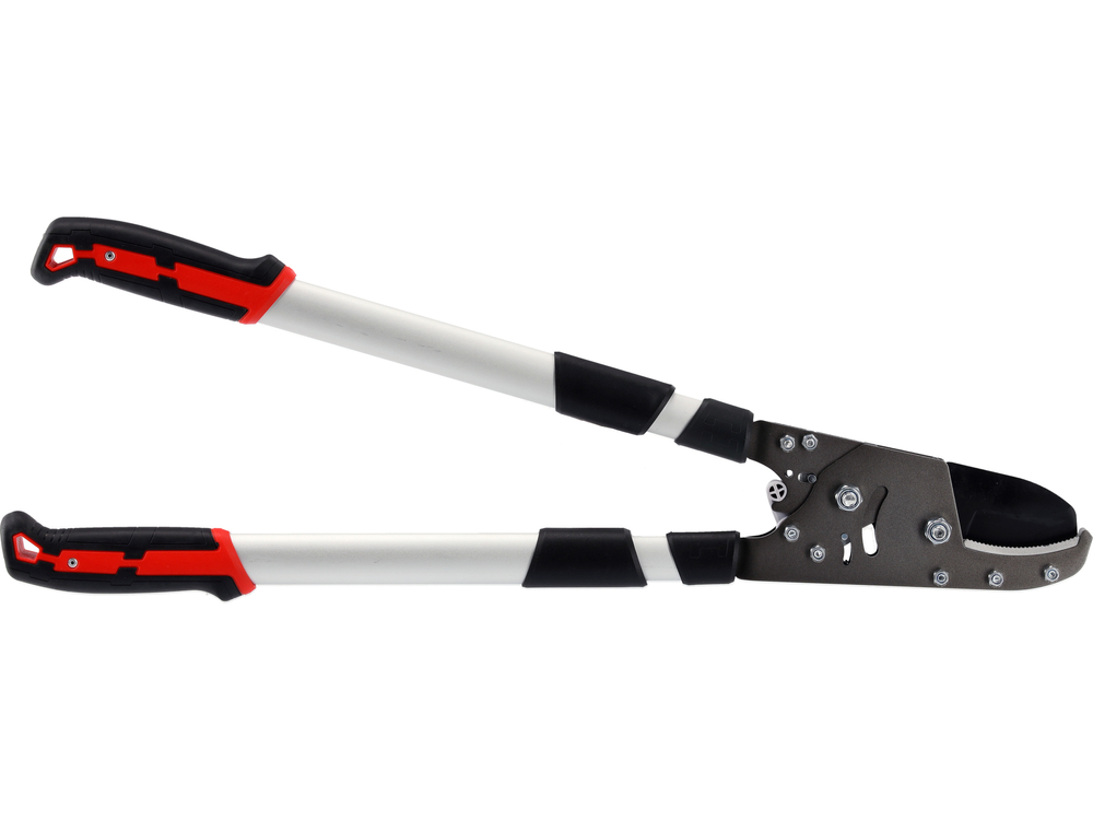 Mânerul telescopic al foarfecii crește lungimea și raza de acțiune a instrumentului de la 660 la 910 mm, permițând ajustarea la condiții și sarcini. Fabricate dintr-un aliaj ușor și puternic de aluminiu cu elemente PP și TPR moale, acestea oferă o prindere sigură și confortabilă. Lama din oțel SK5 temperat, acoperită cu un strat de PTFE în partea superioară, minimizează frecarea, menținându-și ascuțimea pentru o perioadă îndelungată.