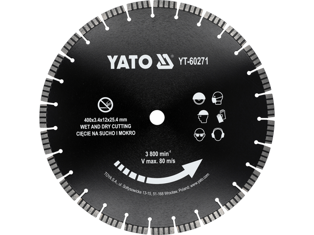 Disc diamantat destinat lucrului atât pe uscat, cât și pe umed, pe beton întărit și armat, cărămidă, granit, zidărie, piatră, nisip de cuarț.