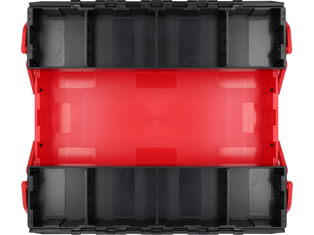 Cutie de unelte practică realizată dintr-un material rezistent ABS și PA asigură o protecție solidă pentru uneltele depozitate. Rezistentă la șocuri și daune mecanice, se va potrivi atât în atelier, cât și în timpul lucrărilor în teren.