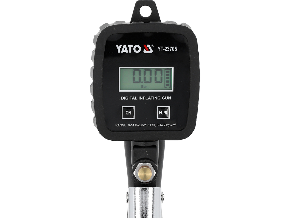 Pistolul pentru umflare roți cu panou de control digital și afișaj LCD combină un sistem de măsurare precis cu o construcție ergonomică. Dispozitivul este controlat printr-un panou electronic cu un afișaj LCD clar, care permite setarea și citirea valorii dorite a presiunii și urmărirea procesului de umflare în timp real.