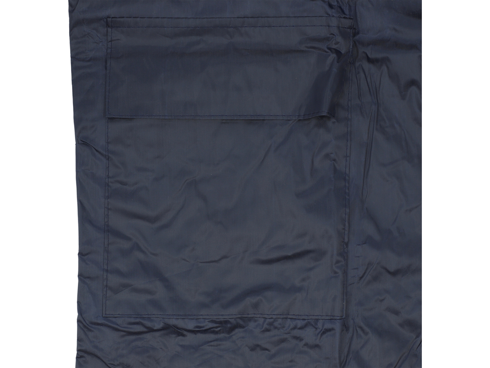 Geacă ușoară de ploaie cu benzi reflectorizante pentru îmbunătățirea vizibilității, cu două buzunare mari și cu glugă reglabilă.