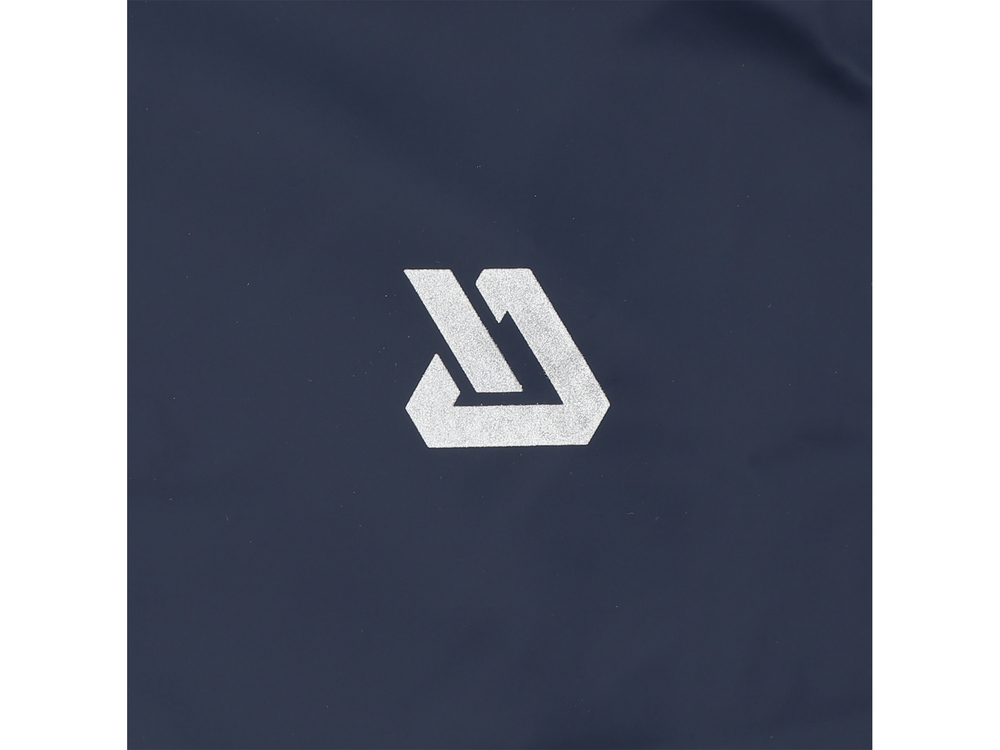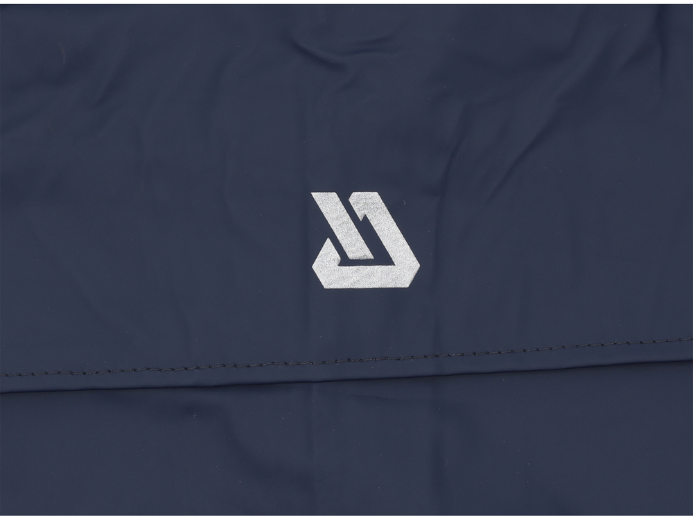 Palton de ploaie din material elastic, cu benzi reflectorizante pentru îmbunătățirea vizibilității, cu două buzunare mari și cu glugă reglabilă.